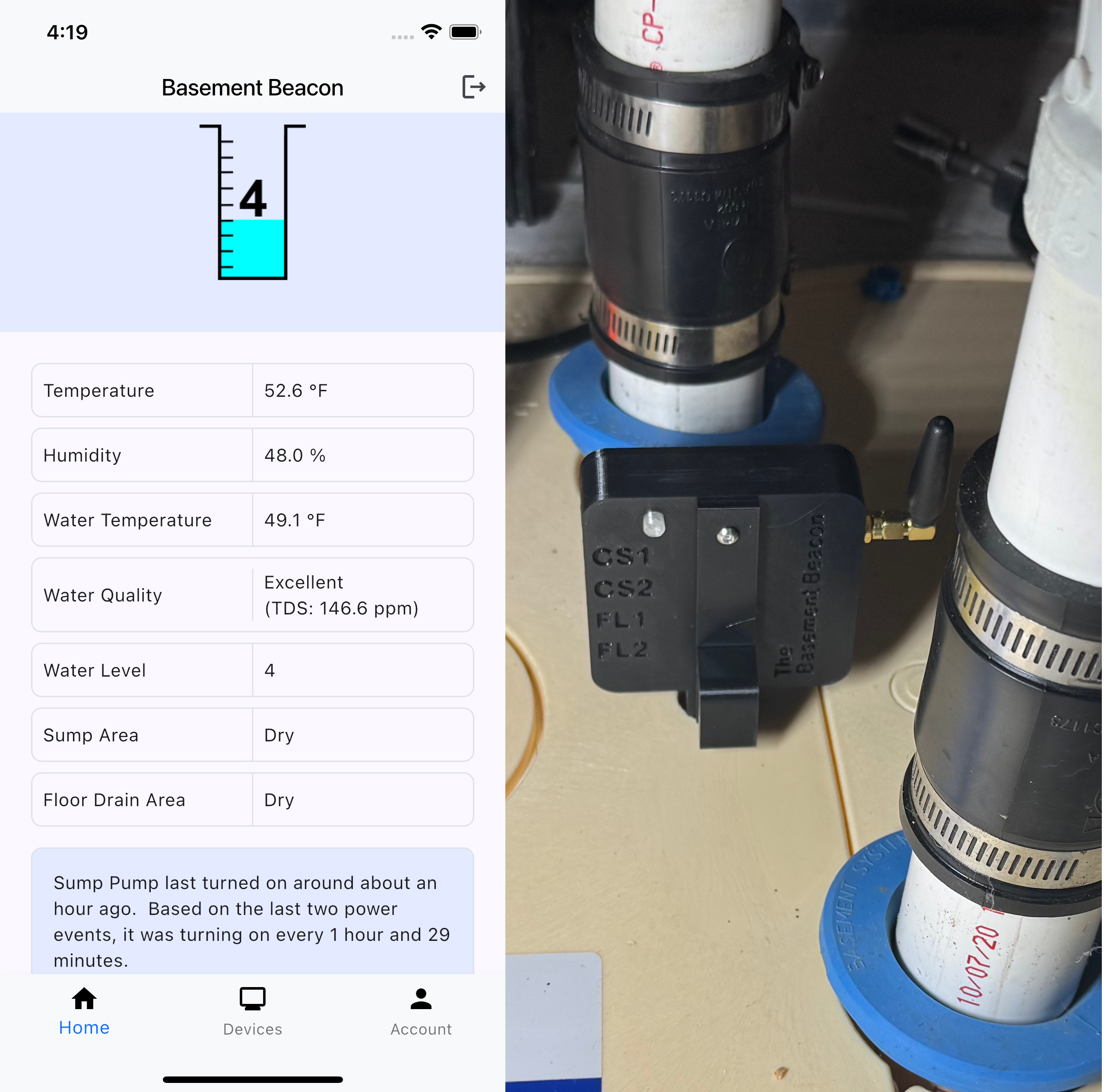 Right on your phone with the Basement Beacon app.